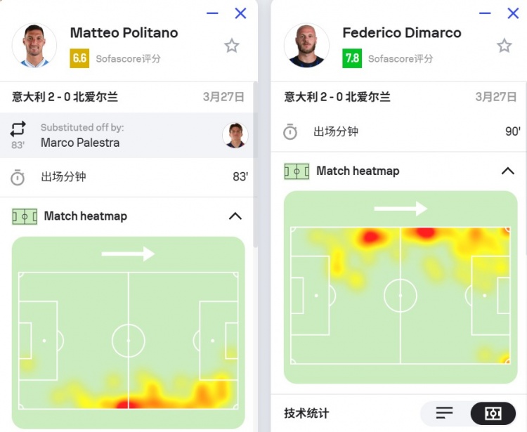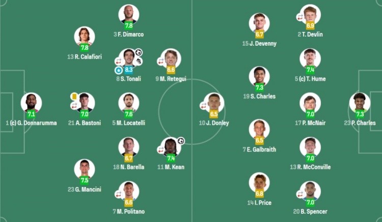对比来看,意大利的胜负手在中场,而波黑决胜要素在中锋。先来看意大利,第一战对北爱尔兰,托纳利的一传一射助他们成功拿到通往决赛的门票。应当说前70分钟北爱的防守很不错,给意大利出了难题。在此之后正是托纳利的突然闪耀,让对方败北。明星价值,不可低估。